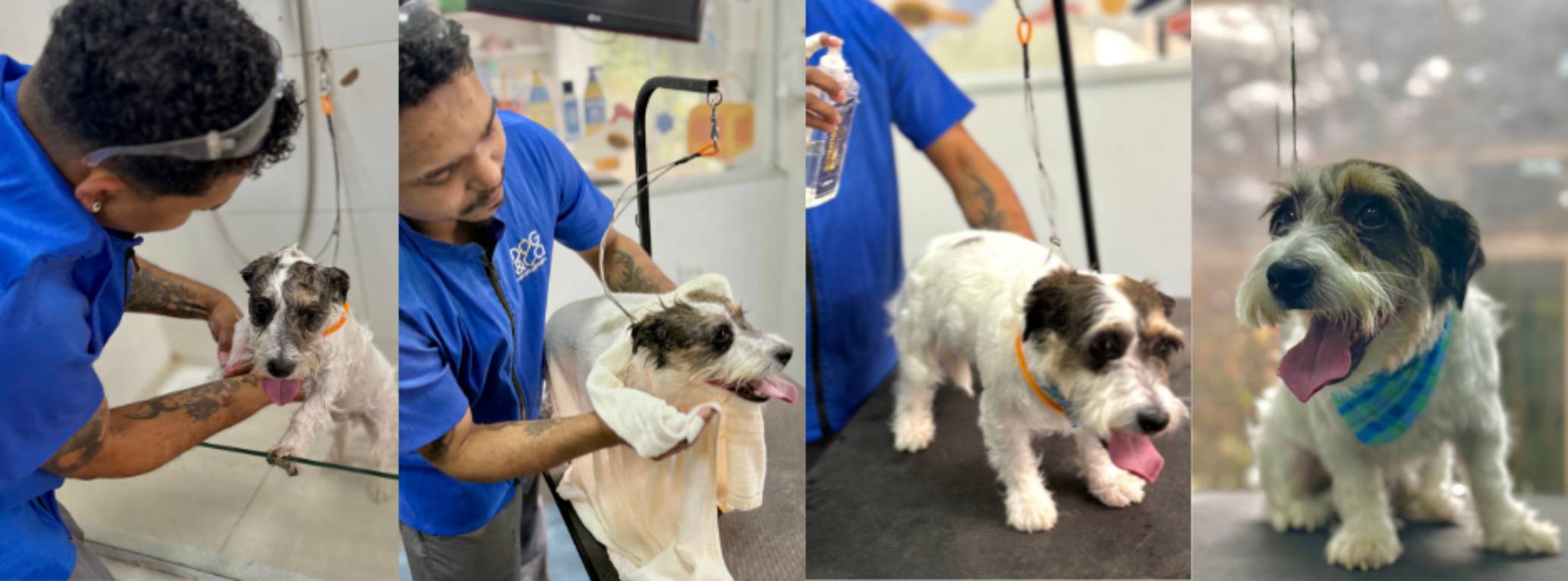 Uma das etapas mais importantes desse momento é o pós: a secagem deve ser sempre feita, principalmente a dos cães de pelagem mais longa. Além disso, deve-se escovar e desembaraçar bem o pelo, além de escolher um xampu adequado para aquele doguinho, respeitando o tipo de pele e de pelagem de cada um. No Riopet, eles dão uma atenção especial à escovação, que é essencial, principalmente antes do banho, para evitar nós e facilitar a limpeza. E, durante a lavagem, eles costumam verificar a presença de pulgas, carrapatos, feridas, verrugas ou qualquer alteração na pele.