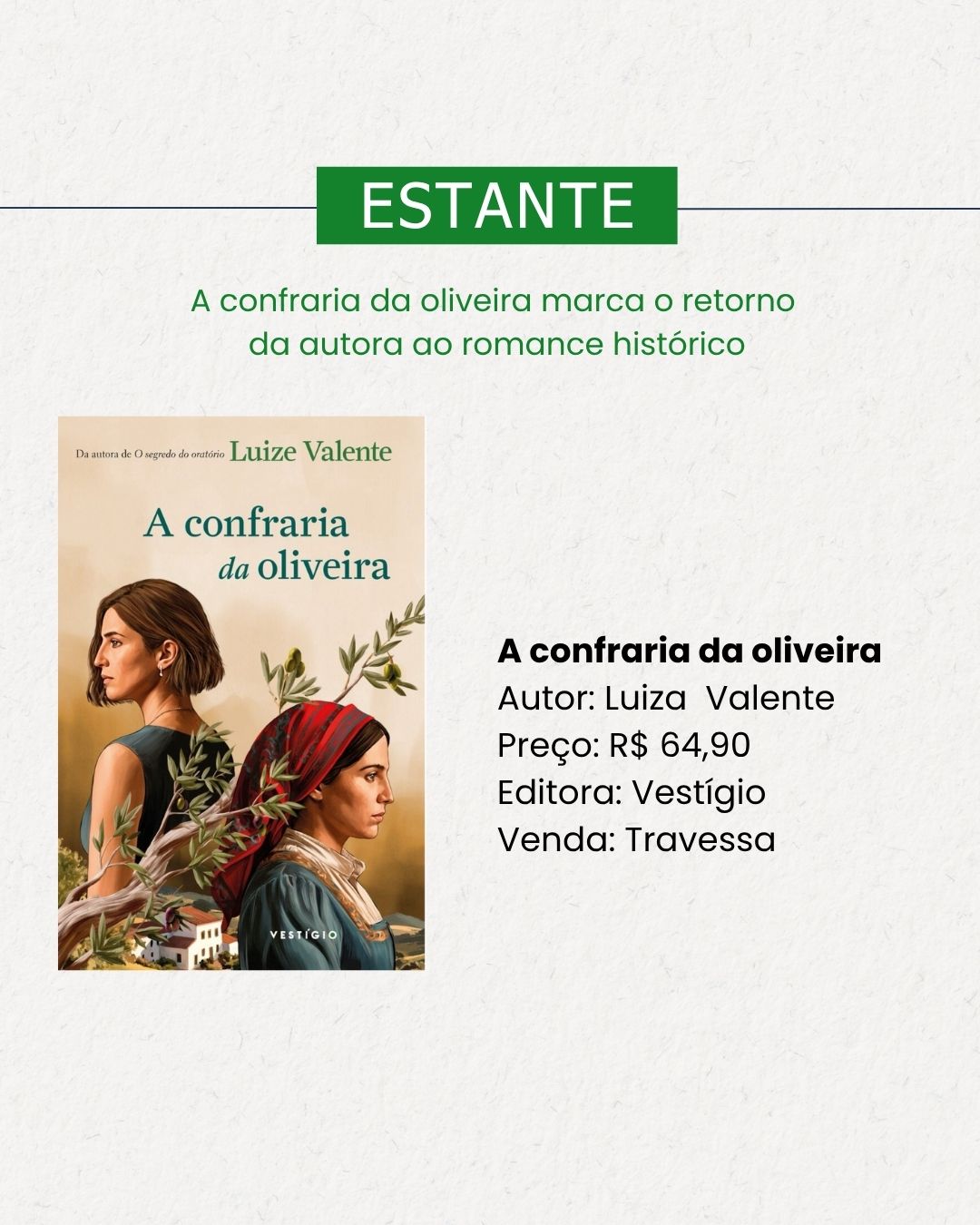 20 mar, 2026 O NOVO LIVRO DE LUIZE VALENTE A confraria da oliveira marca o retorno da autora ao romance histórico
