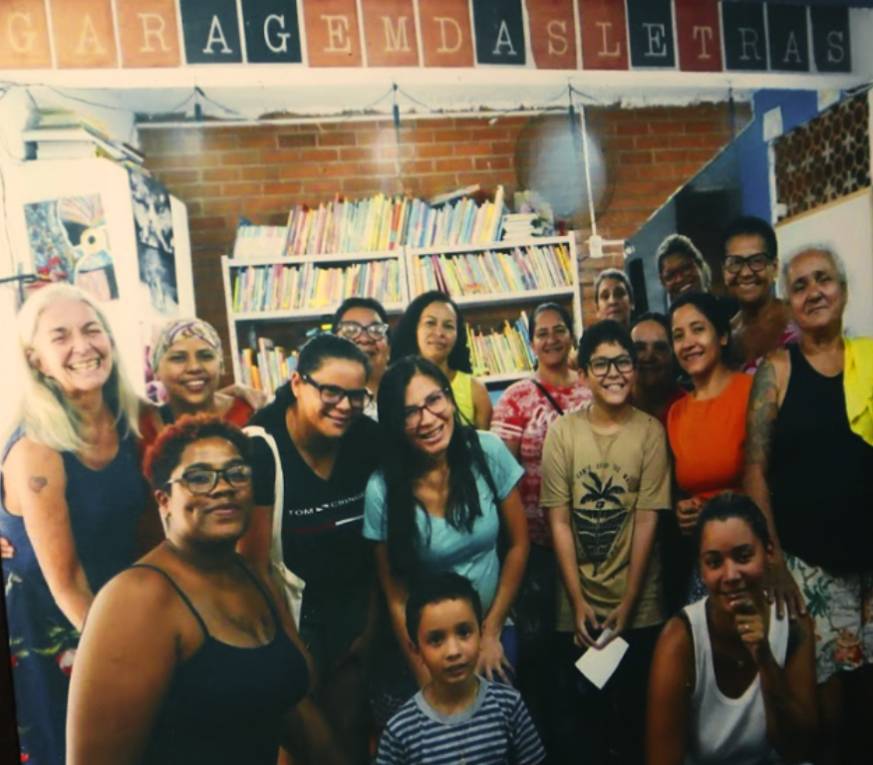 Barbara com os voluntários da Garagem das Letras