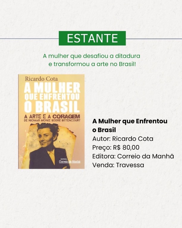A trajetória de uma das mulheres mais combativas da história cultural brasileira ganha novo olhar na biografia “A mulher que enfrentou o Brasil: a arte e a coragem de Niomar Moniz Sodré Bittencourt”, do jornalista e crítico de cinema Ricardo Cota. O livro resgata a vida de Niomar Moniz Sodré Bittencourt, figura central na defesa da liberdade de expressão e na consolidação da arte moderna no país.